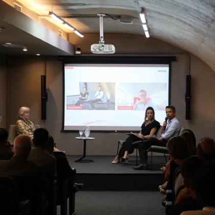 Com a mediação da Ana Paula Veloso, a participação da Jussara Machado e da reitora da SKEMA Brasil, Geneviève Poulingue, os convidados compartilharam suas experiências, iniciativas e expectativas diante das mudanças do mundo e dos posicionamentos das suas respectivas empresas.