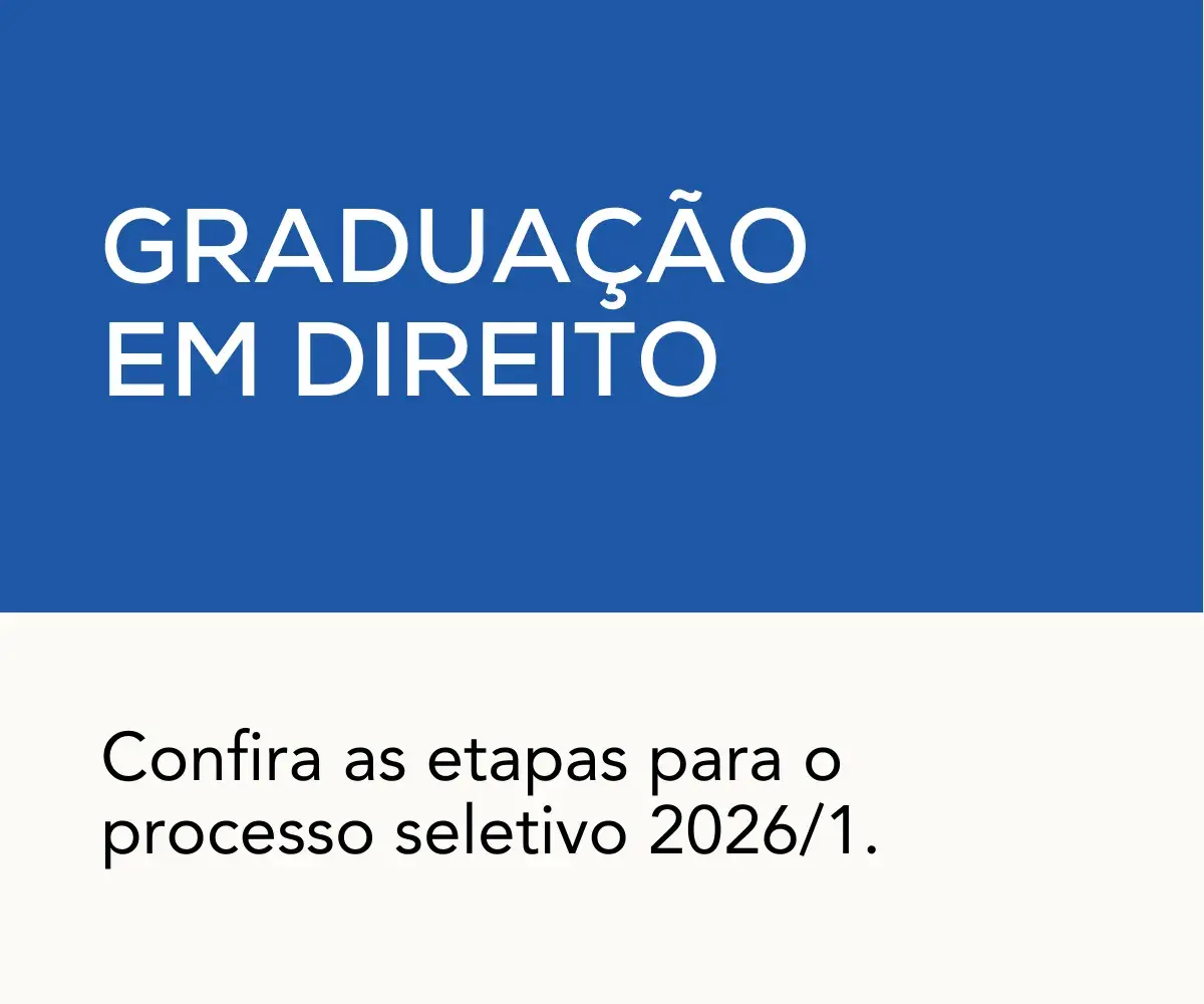 O Processo Seletivo 2026.1 para a Graduação em Direito encontra-se aberto a partir de 05 de setembro de 2025 até o dia 28 de setembro de 2025. Composto por 6 etapas, o processo garante uma avaliação completa dos candidatos.