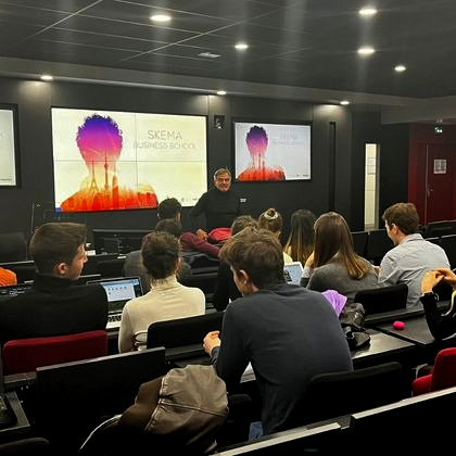 At the latest monthly meeting, initiated by Christophe Bisson, director of the master's programme, the students were able to interact with Axel Rückert, a Francophile who has worked for several large European companies (Philips, Henkel, Debitel, etc.). An essayist and author of several works on Franco-German relations, Axel presented his latest book "Faire réussir la France que j'aime", in which he shares his viewpoint on the most "French of the Germans", and focuses on the means of reforming the systems and enhancing the assets of France to make it succeed.