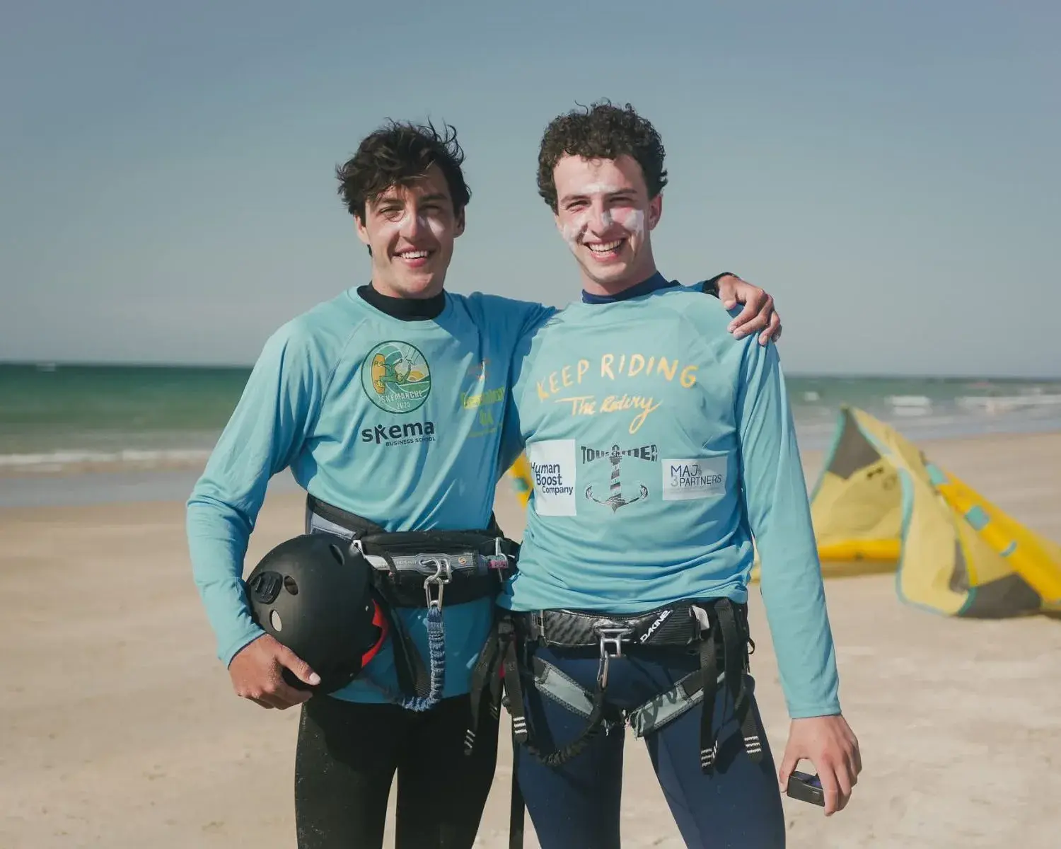 They said they would do it – and they did. On 20 June, SKEMA Business School students Oscar Masson and Marius Lesage, both in their third year of the Master in Management (PGE) programme, successfully crossed the English Channel by kitesurf. Backed for several months by the school and its community, the project aimed to raise funds for Tous en Mer, a charity that introduces people in vulnerable situations to the world of sailing.